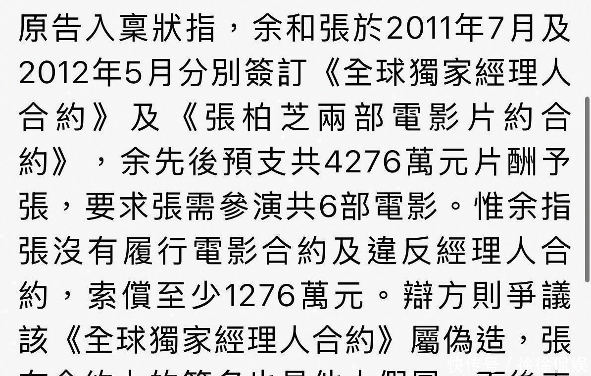 余毓兴出于对她父亲的面子以及觉得她离婚后一个人带孩子挺不容易,就提前付了万的片酬,双方也签了个合同。没料到,张柏芝翻了身之后竟然翻脸不认人,结果余毓兴把她告上了法院,这场官司搞了五年,年打年,直到现在还没判。